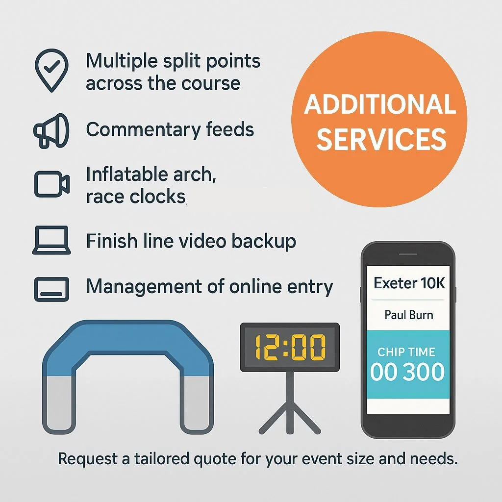 Online Entry: We can provide online entry for your event, which feeds seamlessly into our timing service.